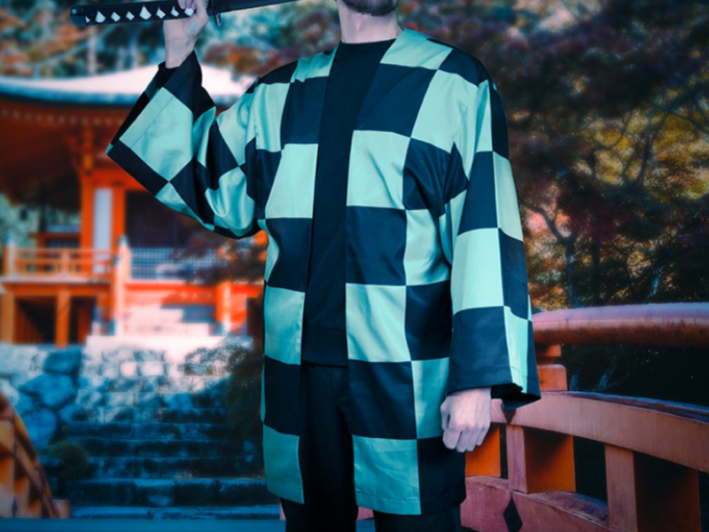 Cette veste est une véritable réplique du haori de Tanjiro Kamado, le personnage principal du manga Demon Slayer, au motif si reconnaissable de carreaux verts et noirs. Idéal pour compléter votre cosplay.