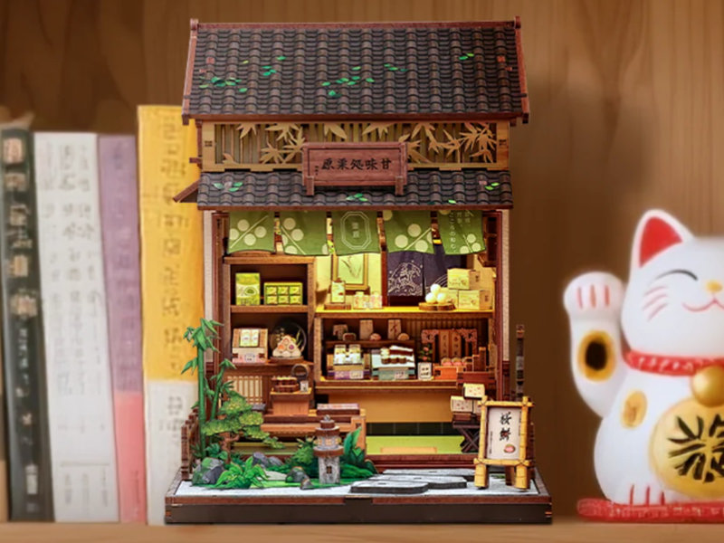 Ce booknook reproduit une petite boutique de friandises comme on en trouve à presque tous les coins de rue des quartiers populaires au Japon.