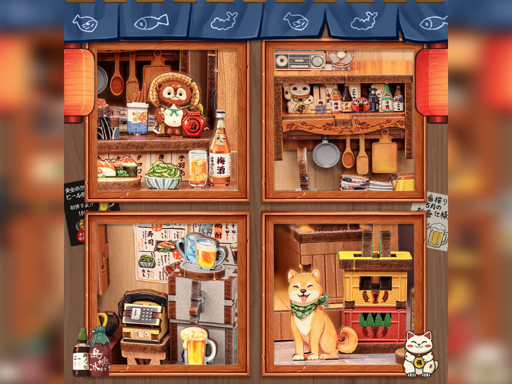 Le moindre détail est étudié : des affiches en "vrai" japonais, une multitude de sortes d'alcools sur les présentoirs, une bière pression en plein tirage, ou encore ce gentil shiba inu qui vous accueille.