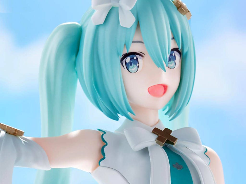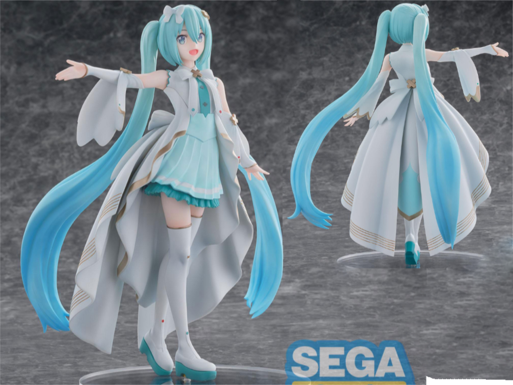 Sega nous propose ici une réplique en figurine de la version de Hatsune Miku présentée dans le film "A Miku who can't sing", avec des couleurs plus pastels que l'originale, lui offrant un coté romantique très réussi.