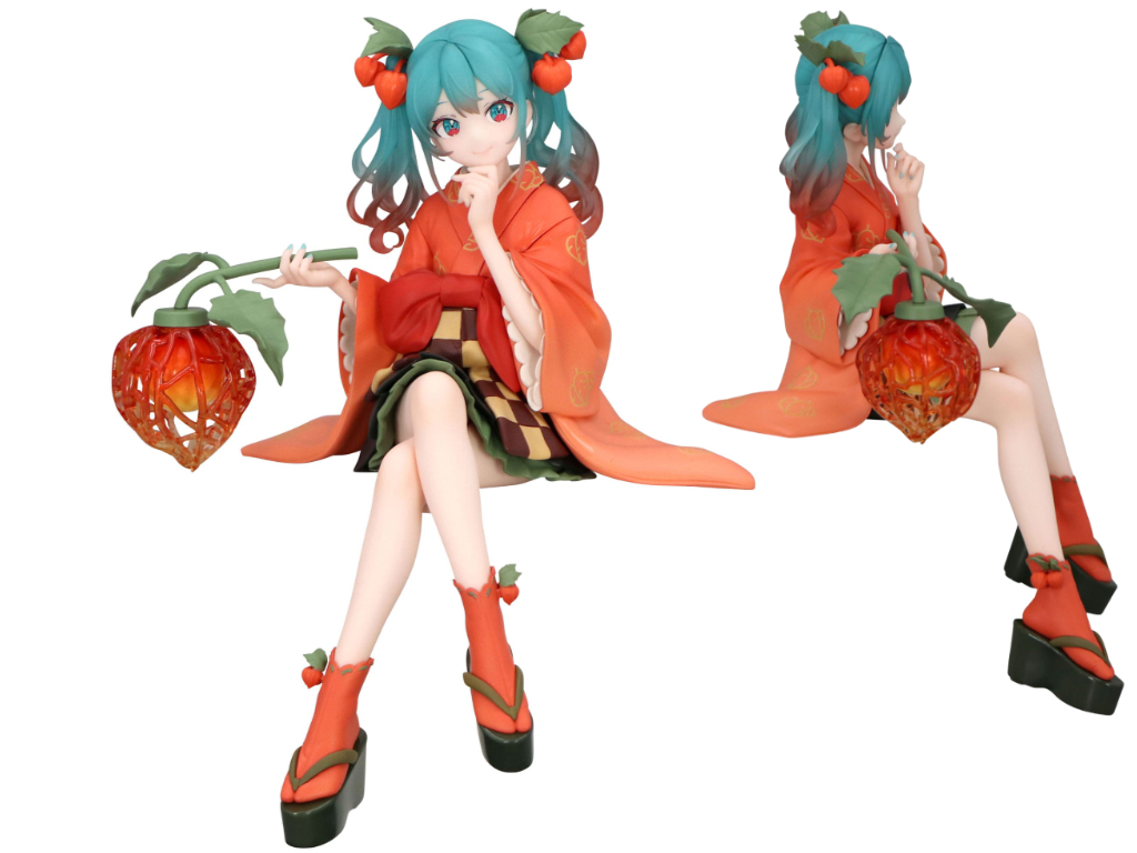 Habituée aux couleurs sur une dominante bleu / blanc, parfois violet, Hatsune Miku adopte cette fois-ci une tenue aux couleurs rouge orangé du plus bel effet.
