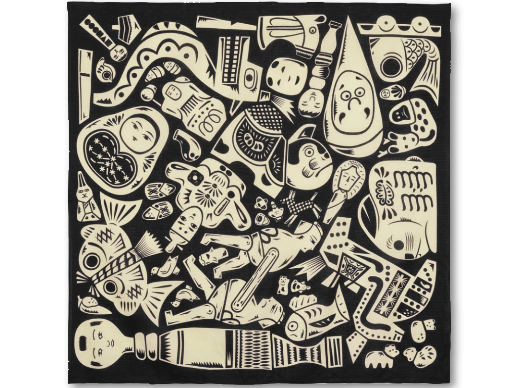 Ce furoshiki présente des Kyodo-gangu, des jouets folkloriques traditionnels propres à chaque région du Japon. Chaque jouet reflète la culture, l'environnement et les croyances locales, et ils sont souvent considérés comme des porte-bonheur ou des protections contre le mal. Ainsi, les utiliser comme décoration de l'emballage de votre cadeau est une manière de souhaiter à son destinataire de bénéficier d'une telle protection.