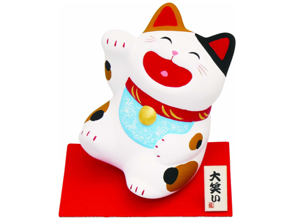 Le bonheur passe souvent la bonne humeur. Alors aucune suprise à ce que le fameux maneki neko se décline dans cette forme très joyeuse !