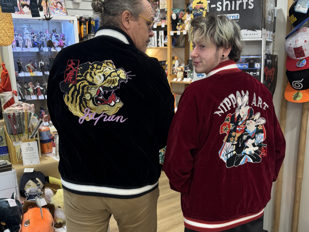 À l'époque de l'après-guerre, de nombreux Américains apportaient des souvenirs traditionnels japonais tels que les kimonos et les obi dans leur pays d'origine. Les vestes "bomber" décorées de motifs rappelant les estampes traditionnelles japonaises avaient alors été réalisées pour ces personnes sous le nom "Sukajan".