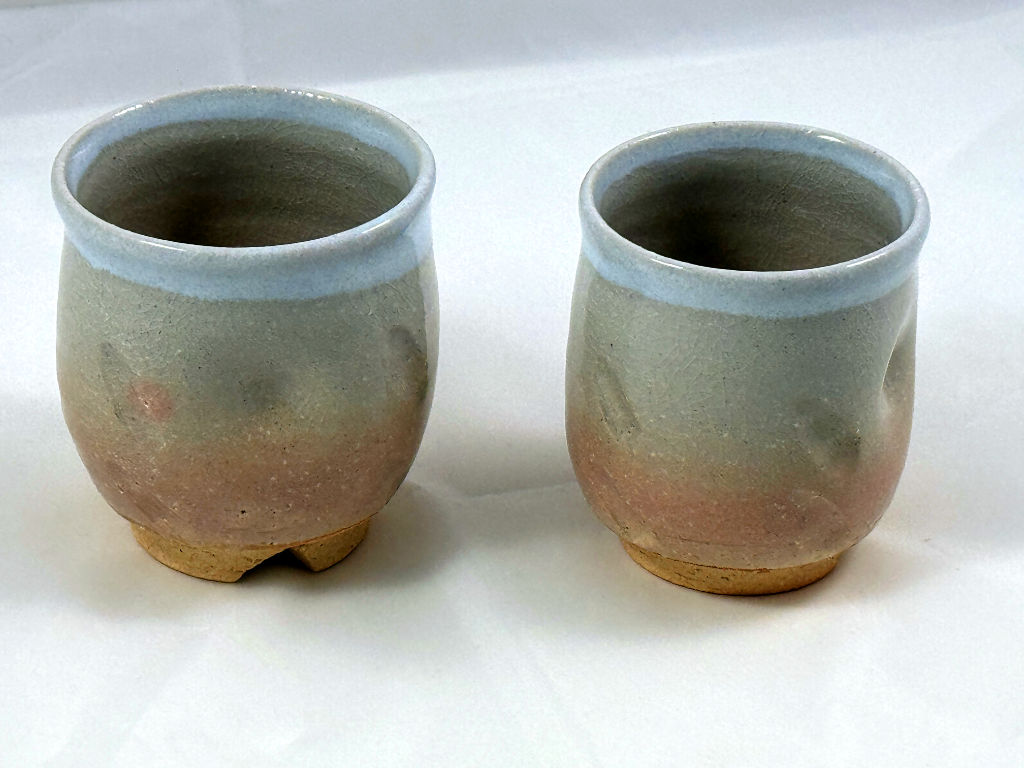 La forme irrégulière de ces tasses "yunomi" reprend les codes du wabi-sabi japonais, cette philosophie qui tend à vouloir renforcer les liens entre les hommes et la nature à travers des objets aux formes délibérément imparfaites.