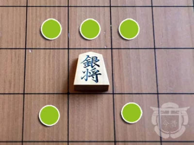 Le Général d'ArgentLe Général d'Argent se déplace d'une case à la fois tout autour de lui, sauf sur les cotés et vers le bas. Pour mémoriser, pensez au "A" de argent qui permet de sa rappeler que celui-ci peut bouger dans les diagonales arrières.